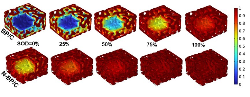 图2.黑鳞电极在不同放电状态下锂离子浓度分布优越性